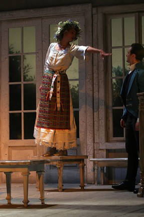 «...Кончаловский умеет задать тон еще до начала действия. В «Мисс Жюли» этому способствуют массивные, реалистичные декорации Любови Скориной, которые еще пустые уже много обещают. Мрачные и запущенные с ощутимо обжитой атмосферой, они представляют кухню, где в течение одной ночи перевернутся три жизни. Однообразие цвета в сочетании со множеством мелких деталей создает впечатление целого мира, существующего далеко за пределами видимости. По ходу спектакля впечатление усиливается, благодаря освещению, разработанному Андреем Изотовым. Оно помогает в ключевые моменты вывести на первый план важные детали – огонь печи, зловеще отражающийся от стен; поношенные сапоги для верховой езды отсутствующего хозяина, одиноко стоящие на столе в центре сцены; рассвет в пышном саду за окнами кухни. Согласно канонам мировой драмы, пьеса Стиндберга является одной из самых трудных. Это рассказ о соблазнах, разочарованиях и горьком предательстве, словно чума, поразившая три жизни в колдовскую Иванову ночь – аристократки Жюли, слуги ее отца, Жана и служанки Кристины. Взгляд самого драматурга на отношения мужчины и женщины полон скорби яда, как и его убежденность в том, что классовые различия являются непреодолимой преградой между людьми. Кончаловский нисколько не смягчает эту концепцию. Наоборот, он расширяет ее рамки, включая мрачные эмоциональные оттенки и психологические полутона, которые свойственны современному искусству. Взаимоотношения характеров обнажают сложные яркие живые личности. Их слабость и несостоятельность не в коем случае не затмевают их очарования и врожденную человечность. Притягательность постановки Кончаловского в том, что в ней нет ни одного клише, с которыми легко можно столкнуться, при постановке драмы Стриндберга. «Мисс Жюли» в трактовке Кончаловского – это не столько повествование о противостоянии полов или о социальной несправедливости, сколько исследование человеческого стремления к свободе. То, что подобное стремление может быть опасным и трагичным, делает спектакль еще более значимым...»